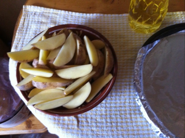 И нарезаем каждую картофелину на 8, желательно равных, частей.