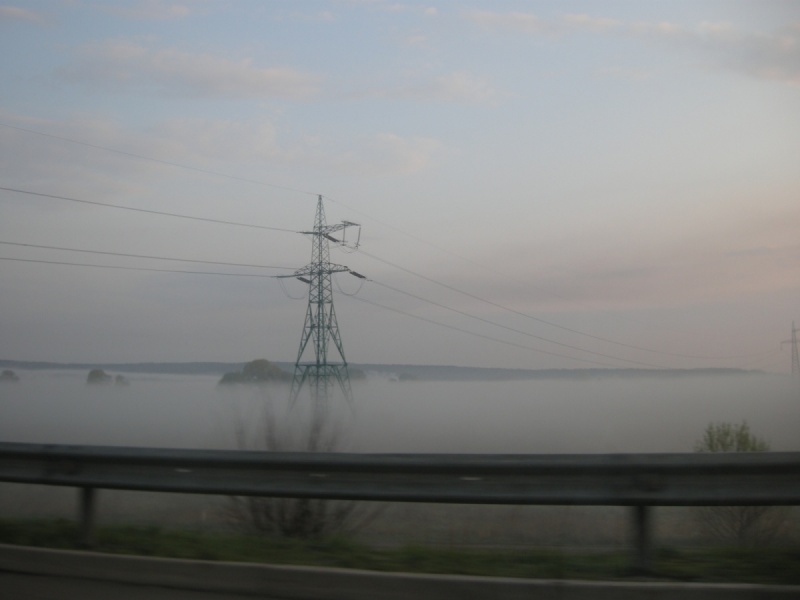 Выехали в субботу, 30 апреля в 6:00. Утро нас встретило густым туманом, который стелился по полям: