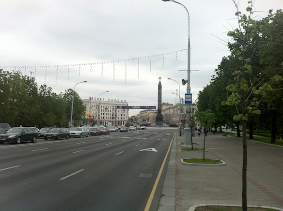Маршрут получился незатейливым: от площади Якуба Колоса, неподалеку которой меня поселили, я дошел сначала до БНТУ, а потом, пройдя с десяток кварталов, вышел на “ось города” – пр. Незалежности, собственно, с которой и начал. Там я сел на метро и добрался до площади Победы.
