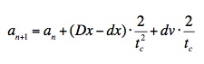 an+1– ускорение для следующего отрезка времени;