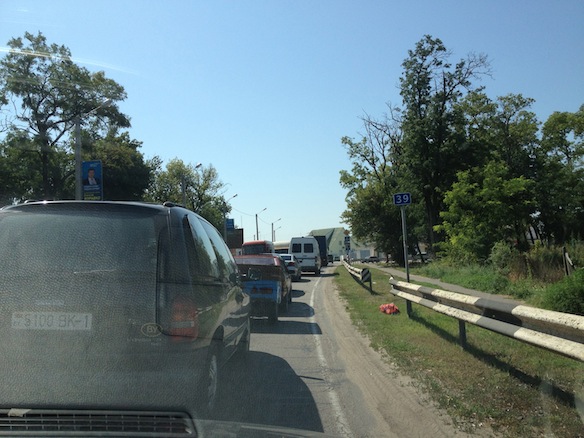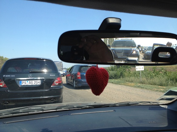 День первый принес много хлопот, связанных со сборами в долгую дорогу: нужно было не только собрать все нужные и ненужные вещи, но и проститься с родителями и родственниками. Киев отпустил нас только в 14:30. По уже доброй традиции мы перед дорогой заехали на МакДрайв и опрокинули по латте на любимом пятачке у озерца. Затем, заправившись, мы выехали в сторону одесской трассы и, покинув наш пыльный и полный хлопот и забот город, со скоростью 110 км/ч стартовали в славный город Николаев. По дороге мы обсуждали нашу свадьбу, делились мыслями и планами. Съехав с одесской трассы, мы обнаружили узкую дорогу (по одной полосе в каждом направлении), которая изрядно измотала обгонами и “бугристостью” покрытия. По шоссе привычно неспешно “плыли” фуры и грузовики, а дорогие паркетники буквально на грани фола совершали обгоны всего, что встречалось им на пути.