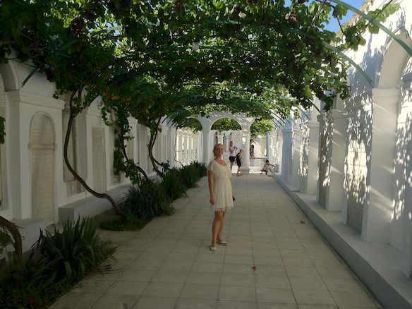 Ливадийский дворец. Поразил неимоверно! Белого инкерманского камня здание просто поражает воображение. Вся, очень богатая и обширная экспозиция, пропитана состраданием и уважением к семье последнего русского царя – Николая II. Залы музея переносят нас в те редкие дни пребывания во дворце царской семьи. Должен сказать, что это поразительно! Они жили в роскоши, но как-то аскетично… В общем, сами приезжайте и убедитесь!Из всех комнат дворца мне больше всего приглянулся кабинет Николая II, а Вале – кабинет императрицы. Вот так! 😉