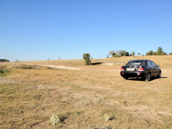 На последнем фотоснимке наш Лансер запечатлен у подножия крепости Чуфут-Кале. Дорога к ней была очень тяжелой: каменистая горная дорога с огромными валунами камней просто вытрясла из нас по пути всю душу. То и дело нас обгоняли УАЗики с туристами, сея клубы пыли, а некоторые участки дороги казались просто непроходимыми для нашей легковушки. Однако, клиренс в 165 мм и на сей раз не подвел: мы успешно добрались до крепости.