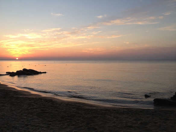 Море здесь очень понравилось! Во-первых, оно чистое и теплое! Дно было видно, наверное, даже около буйков, которые находились совсем не близко. Во-вторых, песчаный пляж. Это на любителя, конечно, но песок, пускай даже с битыми ракушками, я люблю больше, чем гальку.