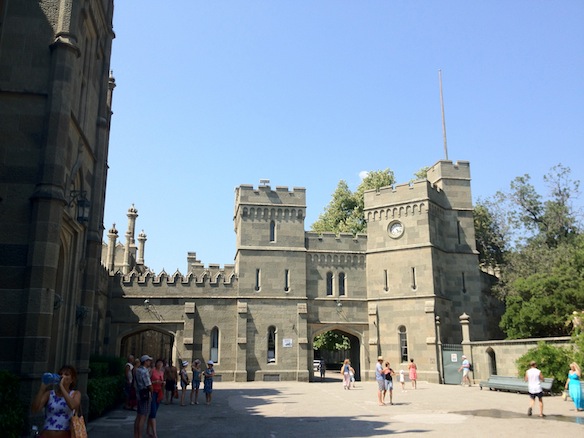 Воронцовский дворец. Огромный средневековый замок с шикарным видом на тризубец Ай-Петри. Мрачный и безумно дорогой фасад из диабаза. Потрясающий зимний сад и вид на море. Модные восточные мотивы и экзотическая растительность.Нам повезло: добравшись до ворот дворца, мы обнаружили припаркованные маленькие машинки, похожие на удлиненные автомобильчики для гольфа. Ими оказались электрокары, которые за 20 грн. с человека проведут вам экскурсию по парку дворца до озера с лебедями. Мы с удовольствием воспользовались этой услугой, прокатившись по витиеватым дорожкам парка и сосредоточившись на осмотре вековых деревьев. Некоторые из них выглядели настолько причудливо, что прямо не верилось в то, что они настоящие…