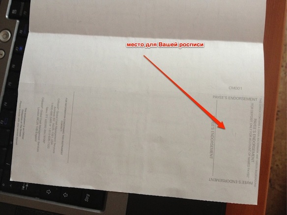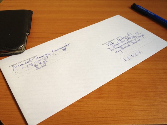 Теперь, берем ноги-в-руки, оригинал чека, вырезанный (или аккуратно оторванный) по специальной линии и топаем в свое почтовое отделение. Там покупаете конверт для заказного письма, кладете туда драгоценный чек, пишите адрес получателя.