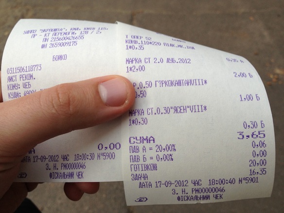 И свой адрес не забудьте. Отдаем запечатанный конверт и сумму за пересылку (у меня она составила 3,65 грн.) девушке-операционистке и отправляемся домой.