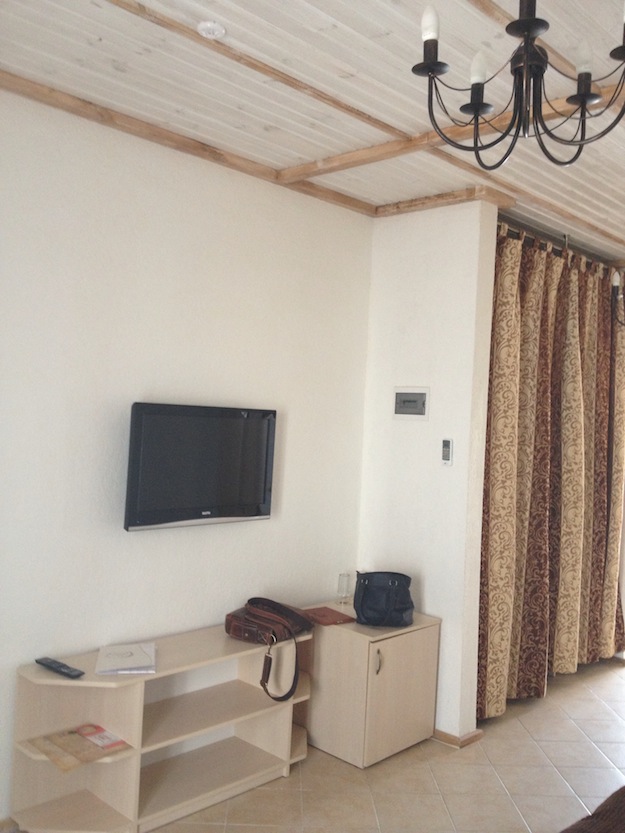В комнате есть также сейф, мини-бар (читай, маленький холодильник) и фен. Если бы не отсутствие завтрака – вылитая 3-х звездочная гостиница с легкой претензией на 4 звезды.