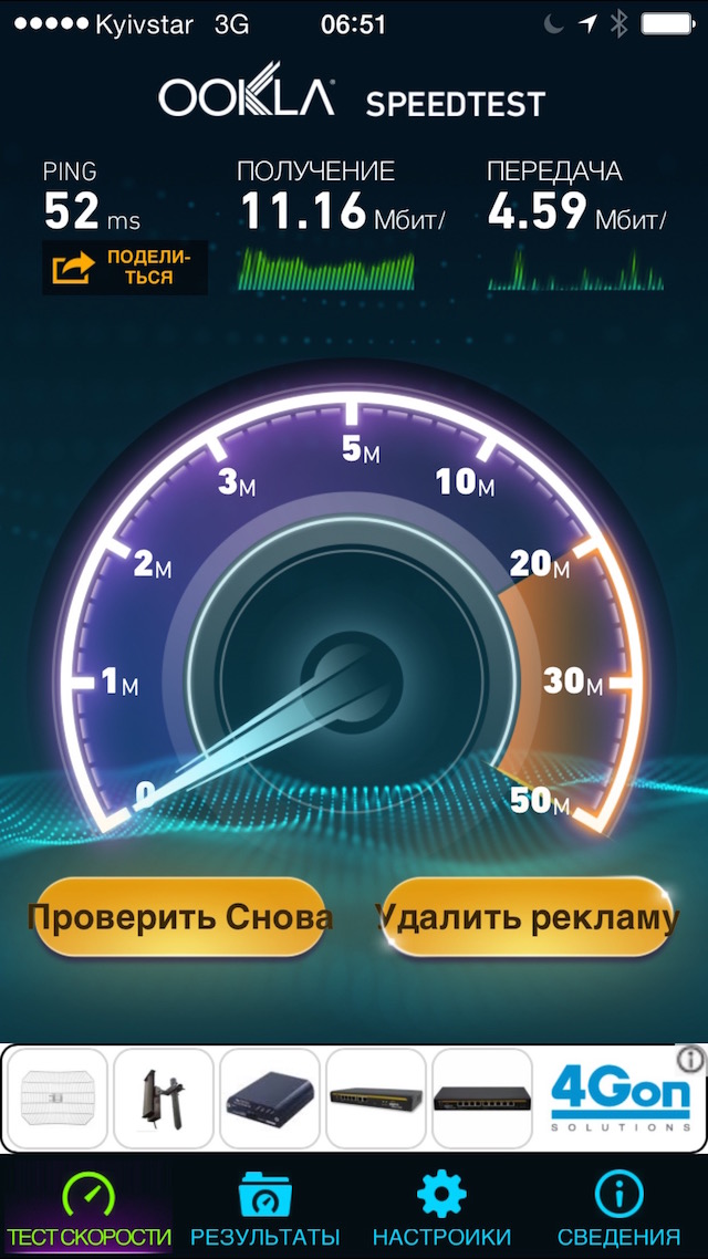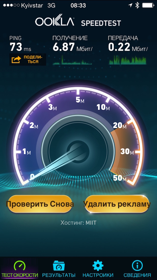 Дома, проснувшись и листая по привычке ленту Facebook, я обнаружил долгожданный значок 3G на экране своего телефона. Сразу решил замерять скорость: