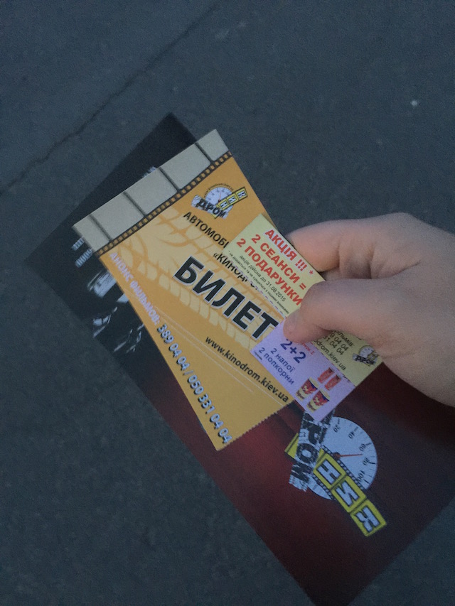 Стоимость этого удовольствия: 100 грн. с автомобиля (да, да: здесь платят не за людей, а за автомобиль) в понедельник, вторник, среду и четверг, и 120 грн. в прайм-тайм пятницы, субботы и воскресенья. Не знаю – дорого ли это. Для компании молодежи в 5 человек, которые без труда могут поместиться в автомобиле – вроде как нет. Для двоих, а точнее троих – цена средняя. В общем, думаю, самый раз. Учитывая что в “Кинодроме” сейчас показывают актуальные картины, считаю эту цену вменяемой и вполне оправданной.