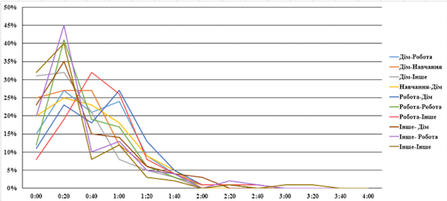 На основі опитування формується ланцюжок пересувань респондента за добу.