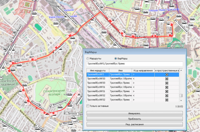 Рис.2. Маршрути руху МПТ в програмному комплексі