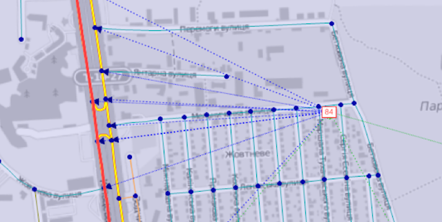Рис.5. Фрагмент примикань транспортних районів до ВДМ міста.