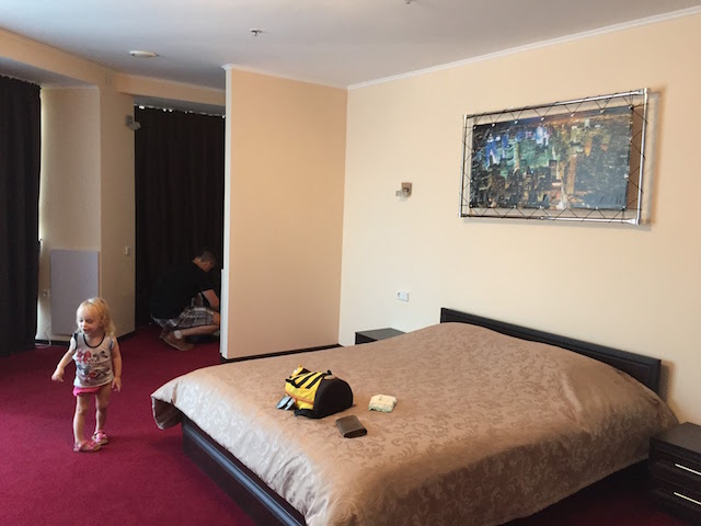 Гостиница называлась Mark Plaza Hotel. Согласно Booking – это одна из двух лучших (вместе с “Ингулом”) гостиниц в городе. Она была новой, большой, но располагалась в торговом центре и была так себе, если честно.