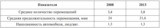 Структура использования различных средств передвижения позволяет оценивать процентное изменение использования автомобилей и общественного транспорта по типам поездок, количеству пассажиров в индивидуальных транспортных средствах, частоту использования автомобилей и другие показатели (табл.2). [10].