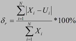де Xi – інтенсивність потоку, виміряна на місці підрахунку з номером i, Ui – розраховане на основі моделі значення навантаження на дорогу, на якій встановлено місце підрахунку з номером i, N – кількість місць підрахунку,