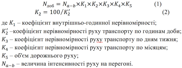 Запропонована формула (1) для розрахунку середньодобової інтенсивності Nдоб з кожного входу на перетинах: