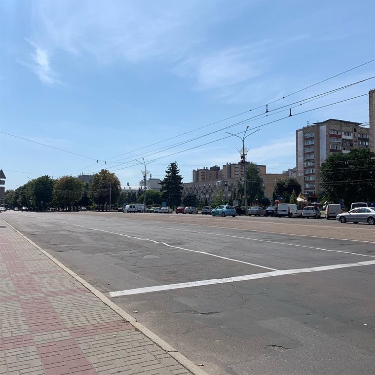 На фото черкасский Крещатик. Что ж, может быть и похож. Кстати, улицы Черкасс имеют линейную планировку, располагаясь параллельно и перпендикулярно Днепру. От этого формируются длинные прямые участки, провоцирующие водителей ехать быстрее. Особенно, после весьма качественного капитального ремонта проезжей части. Наиболее заметно это вечером, когда мотоциклисты и юные рыцари дорог, видимо, выпускают пар после трудового дня.