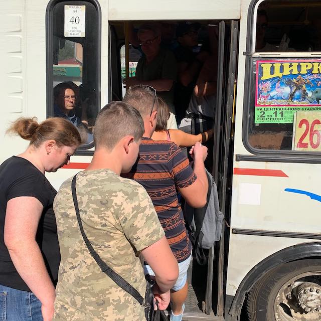 На фото – забитый до предела (и выше) ПАЗик. Ужасно НЕ комфортный, НЕ городской транспорт. Но я не об этом. В Черкассах почти у всех частных операторов на автобусах работают кондуктора. Они обилечивают пассажиров, перемещаясь по салону, заодно проверяют удостоверения льготников, из которых, кажется, здесь возят всех желающих. Честно говоря, не знаю как она (зачастую это именно женщины) перемещалась по салону конкретно этого автобуса, но, как говорят коллеги, они достигли гармонии тела и разума и как-то умеют это делать.