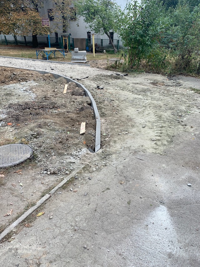 Как вам состояние асфальта на титульном фото? Ну такое, да? Но для пешехода, в общем-то, вполне нормально, без ям и барьеров. Но вот пару дней как его полностью сорвали. «Ммм, ремонт коммуникаций» – подумал я. Но когда подвезли поддоны с бетонными бордюрами, я понял, что просто асфальт во дворе будут менять.